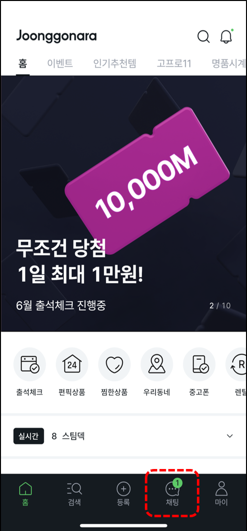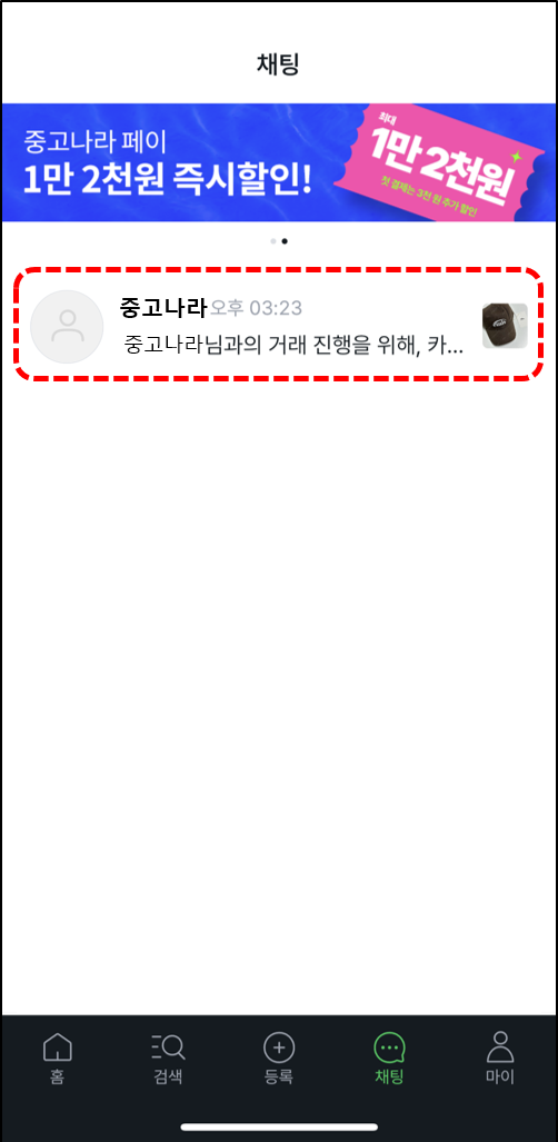 화면 하단 [채팅] 클릭한 후, 채팅 목록 내 채팅방을 통해