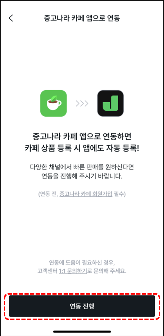(카페 상품 앱 자동등록 연동이 완료되어야 앱 회원과 거래가 가능합니다!)