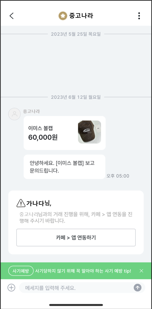 중고나라 앱에서는 중고나라 페이(안전거래)를 통해