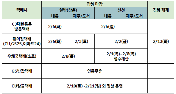 2024년 2월 설날석 연휴 기간의 택배 서비스 집하 및 배송 운영 일정 안내드립니다.