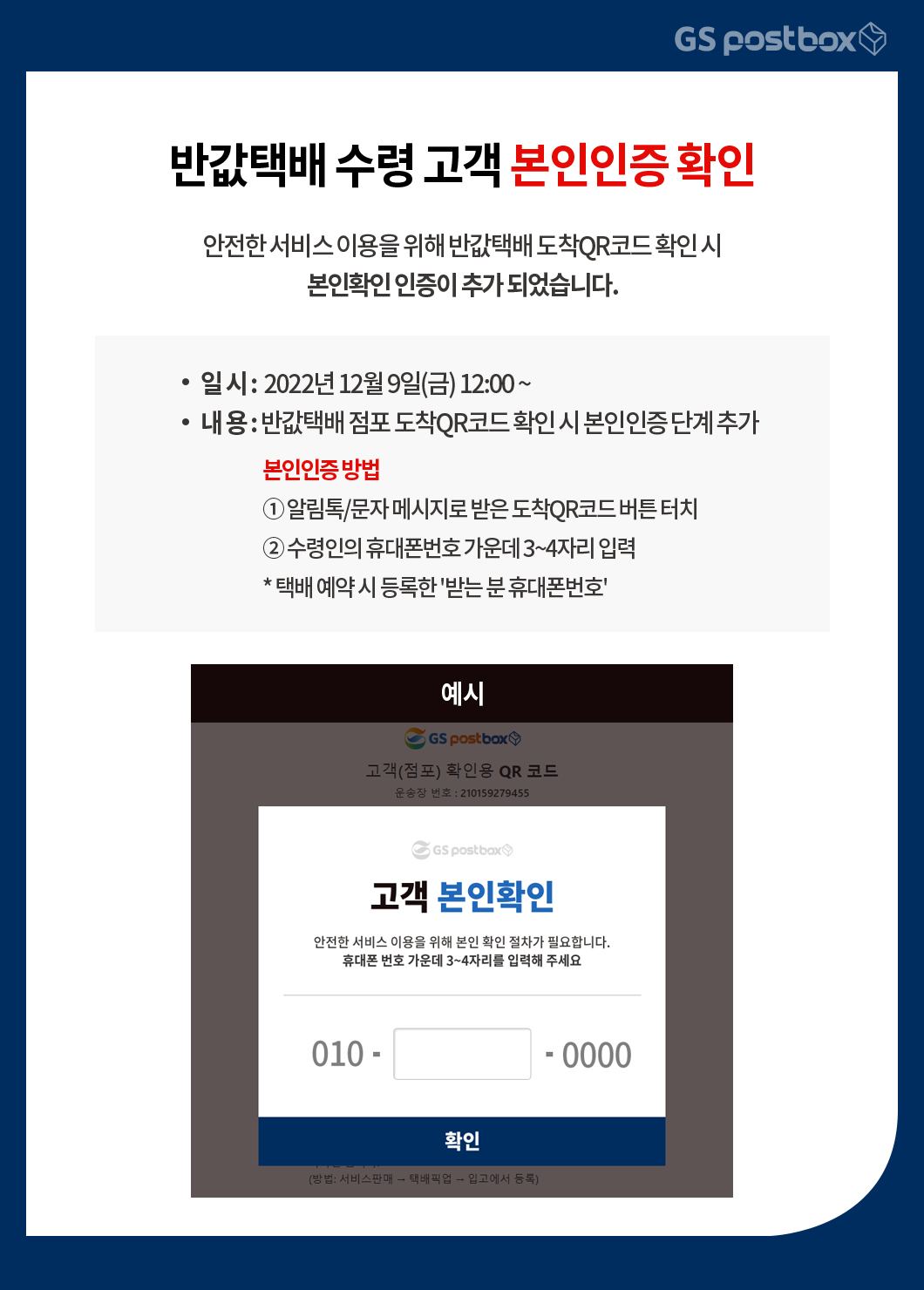 ·내용: 반값택배 점포 도착 QR코드 확인 시 본인인증 단계 추가