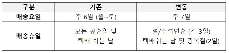 CU/이마트24/GS 편의점택배에서 2025년 1월 5일부터 '주 7일 배송'을 운영하게 되어 내용 안내 드립니다.