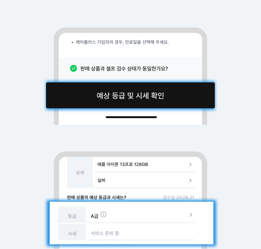 '예상 등급 및 시세 확인' 버튼을