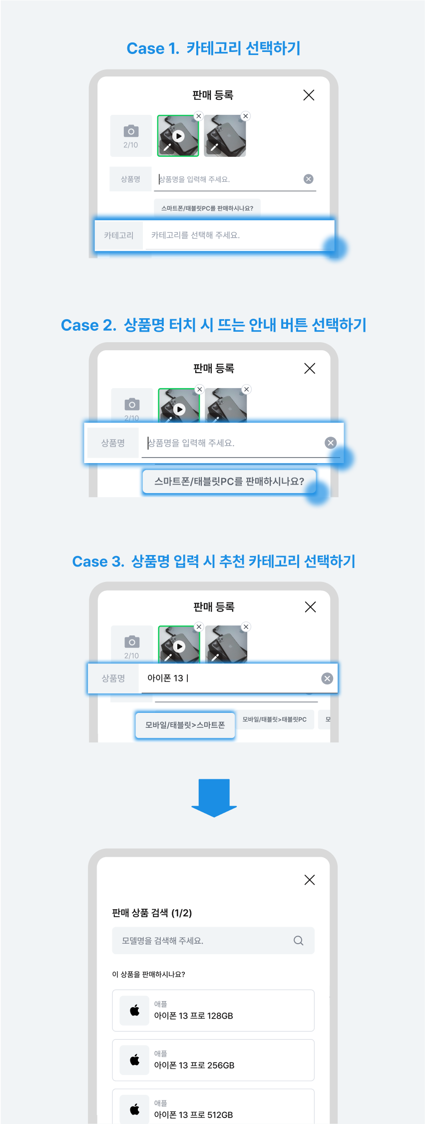 * 현재 '판매 상품 검색'을 통한 스펙 입력은 스마트폰 및 태블릿PC 등 일부 카테고리에 한하여 제공하고 있습니다.