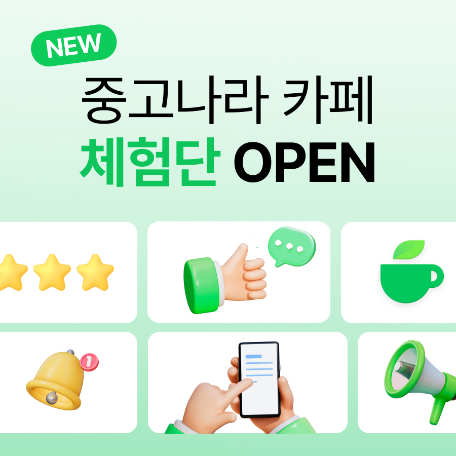 커뮤니티가 되기를 희망하며, 중고나라 카페 체험단 서비스를 새롭게 오픈하였습니다! 🎉