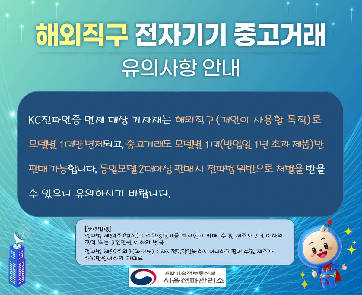 서울전파관리소의 요청에 따라 해외직구 전자기기 중고거래 시 유의하실 점을 안내드립니다.