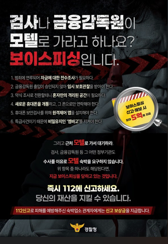 본 안내는 경찰청과의 협조를 통해 전달드리는 보이스피싱 예방 안내입니다.