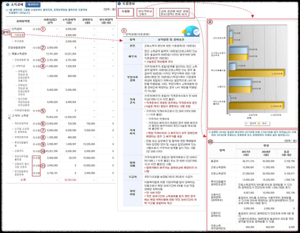 ⅰ. 공제항목별 상세설명 : 선택한 항목의 요약설명 및 공제요건입니다.