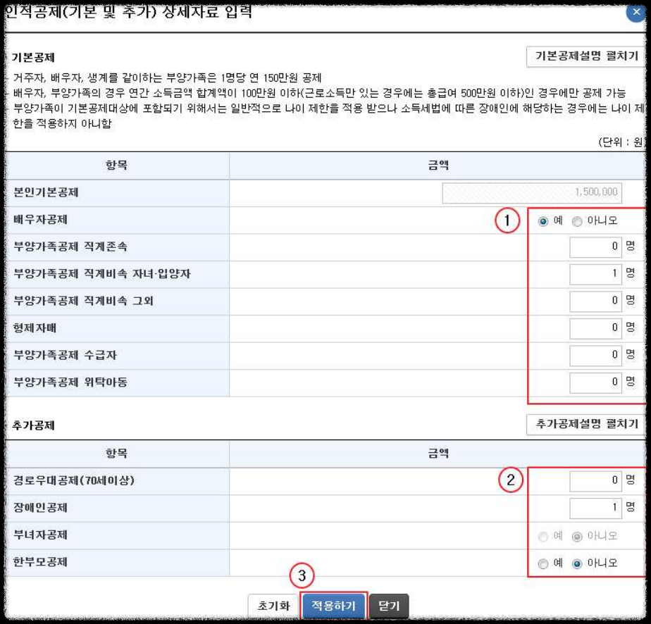 ① 공제 항목에 해당하는 인원수를 입력합니다.