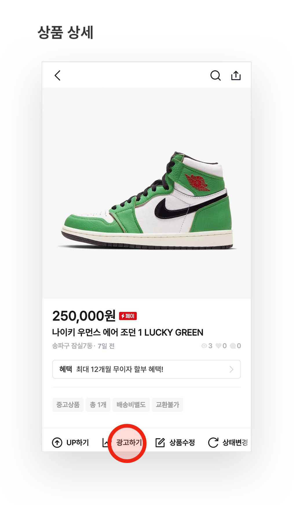 번개장터 광고는 회원이 상품을 검색했을 때 검색 결과에 내 상품이 노출되는 광고에요.