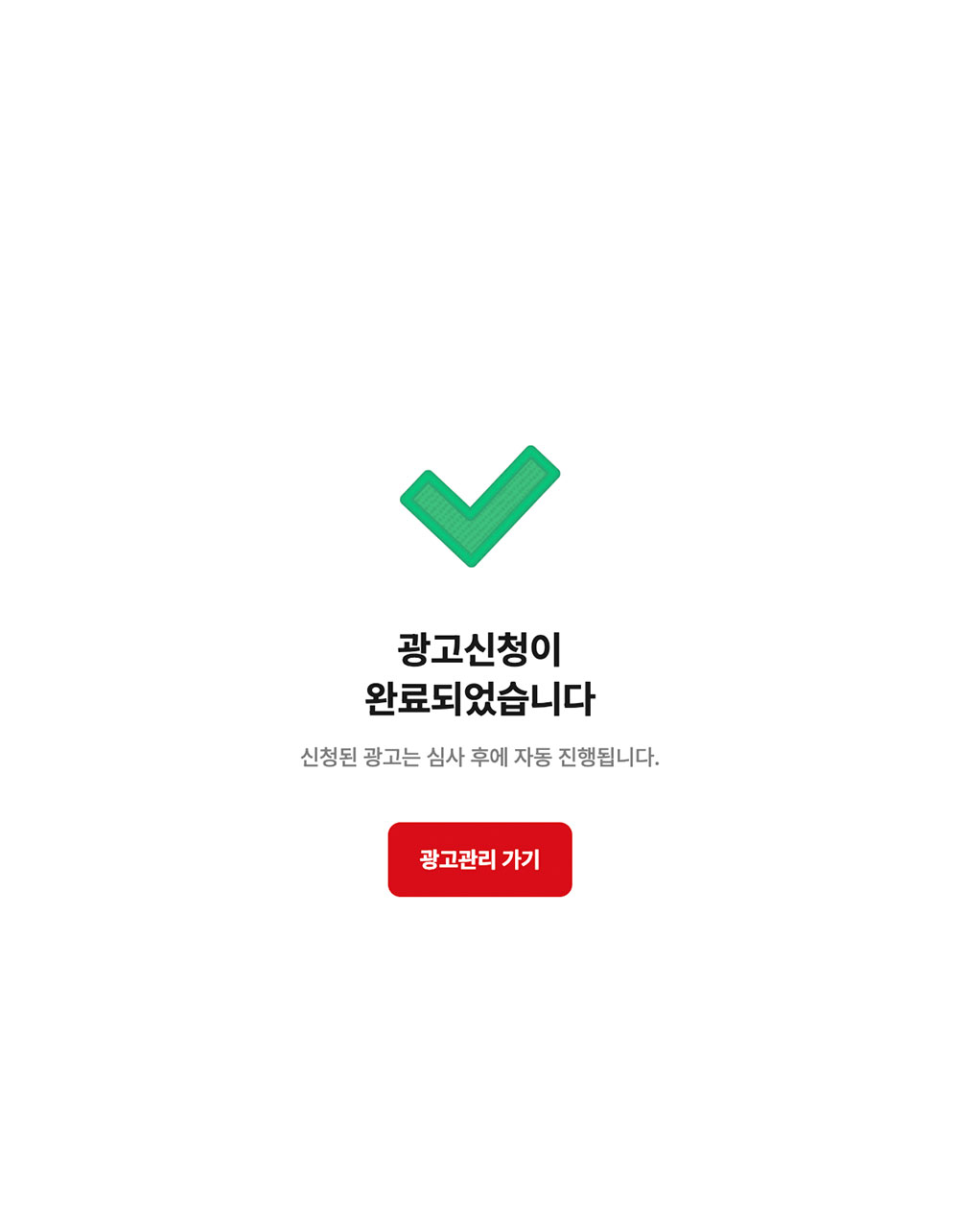 광고 설정 후 신청을 완료한 광고는 광고 심사 후 설정한 기간에 노출이 시작돼요.