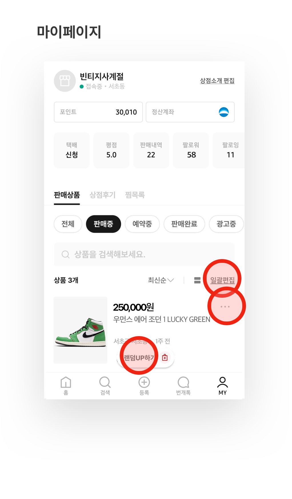 UP하기는 상품의 빠른 판매를 위해 내 상품을 방금 등록한 것처럼 등록 시간을 최신으로 업데이트하는 서비스입니다.